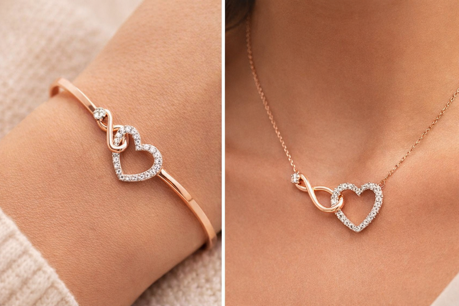 A delicate symbol of forever, this elegant set features intertwined infinity and heart designs accented with shimmering stones. Perfect for everyday wear or meaningful gifting, it represents love that never ends.
